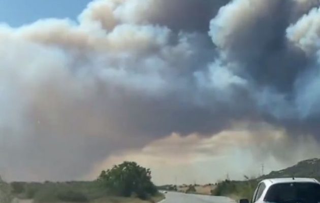 Η πυρκαγιά πέρασε το μεσημέρι την Εγνατία Οδό, όπου είχε διακοπεί από νωρίς η κυκλοφορία και κατευθύνεται νοτιοδυτικά, καθώς, όπως έγινε γνωστό από την Πυροσβεστική, πνέουν βορειοανατολικοί άνεμοι 6-7 μποφόρ.