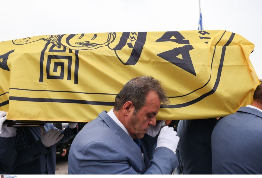 Το φέρετρο του θρυλικού Έλληνα κόουτς ήταν σκεπασμένο με την σημαία του Άρη. Εκατοντάδες κόσμου έδωσαν το «παρών», μαζί με τον άνθρωπό του, τον Νίκο Γκάλη.