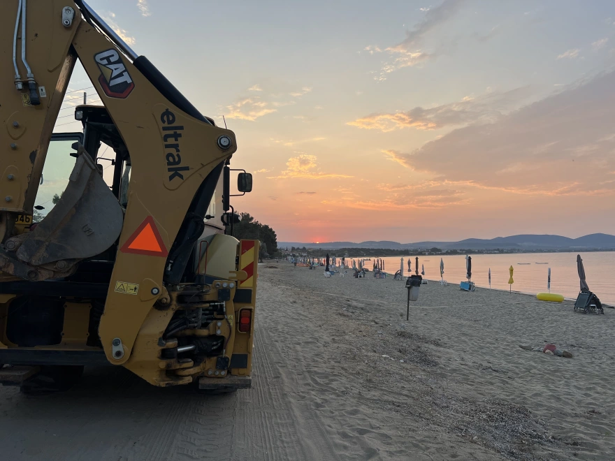 «Ξηλώθηκαν» πάνω από εκατό ξαπλώστρες και ομπρέλες το πρωί τα συνεργεία του Δήμου Πολυγύρου από την παραλία των Καλυβών.